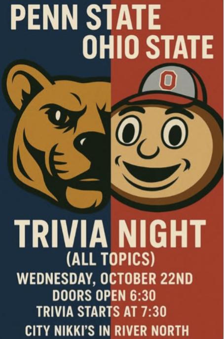 Penn State Ohio State Chicago Trivia Night at City Nikki's! Join this fun opportunity to network with and compete against another Big Ten chapter! -